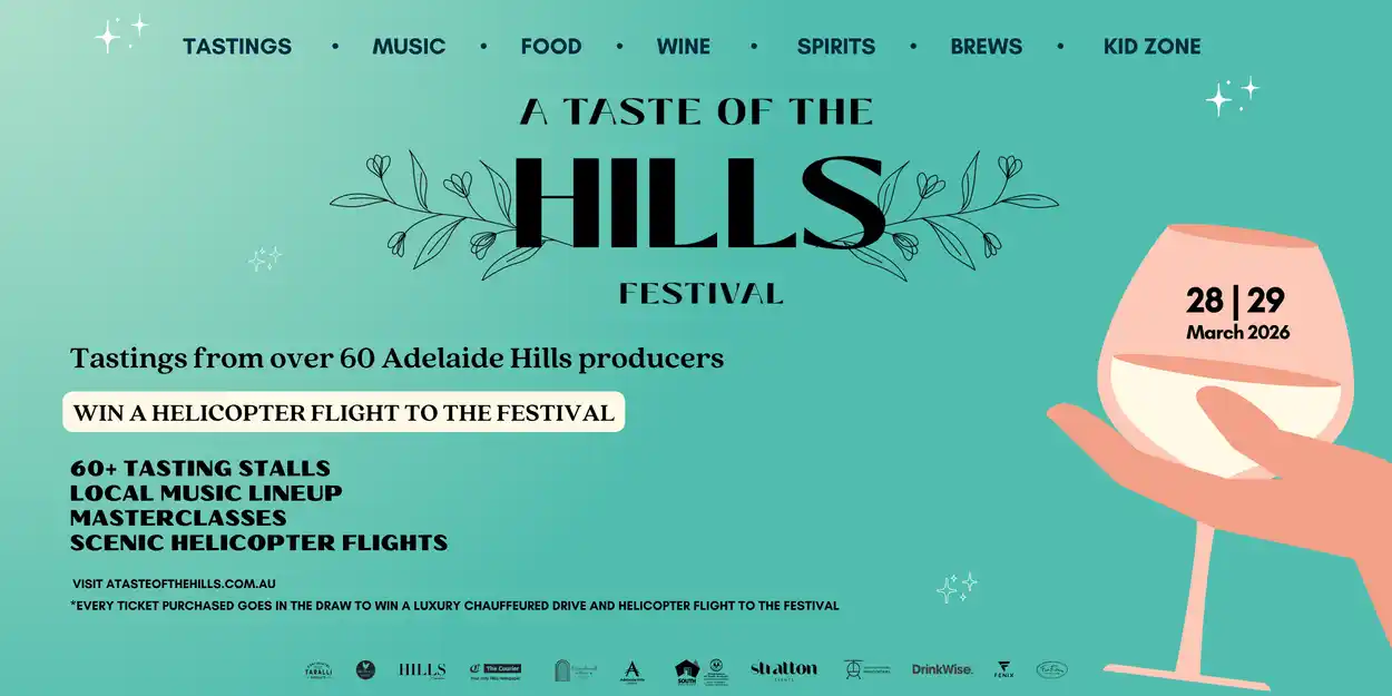 A Taste of The Hills Festival returns on 28–29 March 2026, bringing the very best of the Adelaide Hills together for one unforgettable weekend in Lenswood.