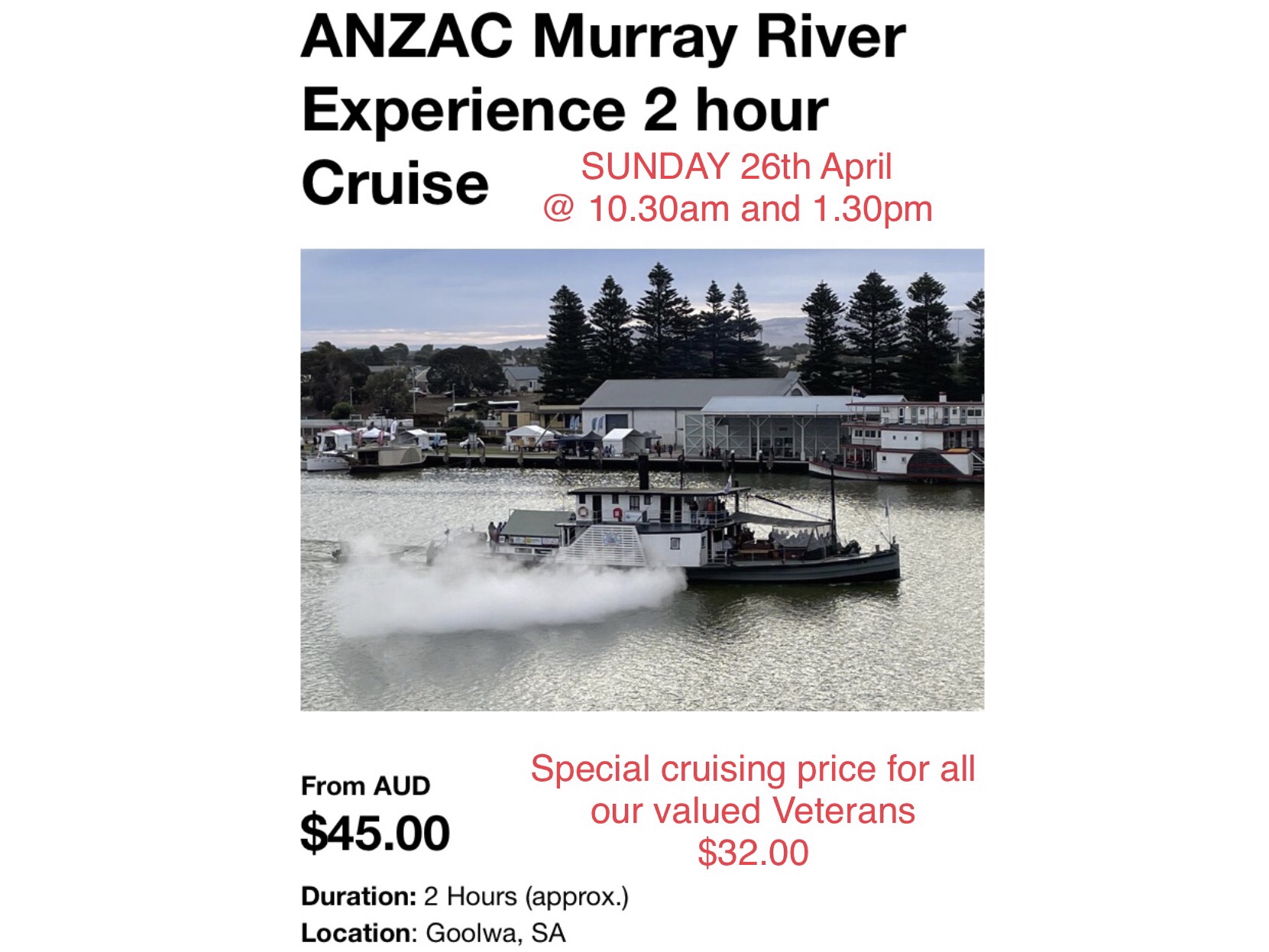 Leaving the Historic Goolwa at 10.30am we return you to the wharf at 12.30 just in time to enjoy a snack or lunch at one of the wharf precinct dining establishments. Or alternatively, if applicable enjoy Lunch first then take the Afternoon 2-hour cruise at 1.30pm.