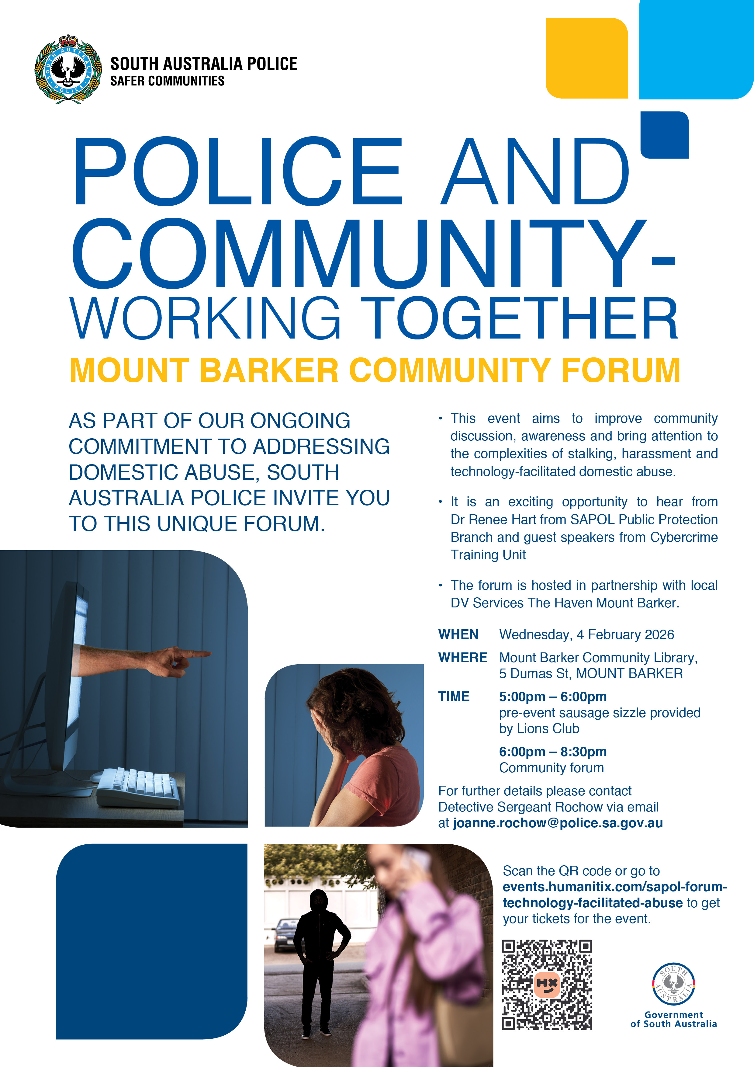 DV services and SAPOL Community Programs will be available for the community to chat with pre-event.