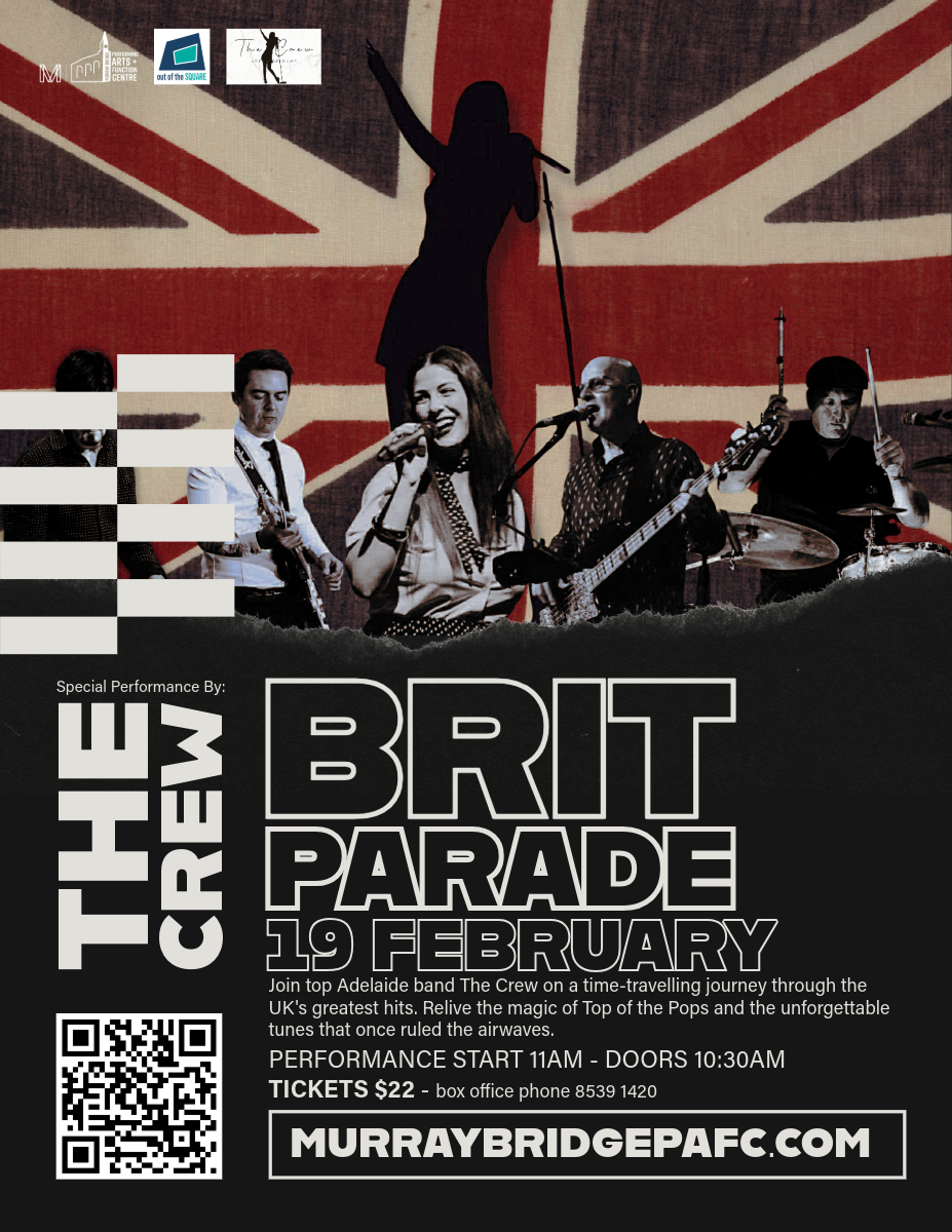 The Brit Parade Back to Community Events Advertisement Date Feb 19 2026 Ongoing... Time 11:00 am Cost $22 + booking fee Location Murray Bridge Performing Arts & Function Centre 13-17 Bridge Street, Murray Bridge South Australia