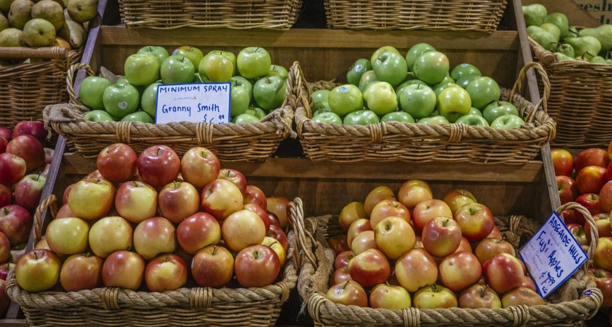 The Adelaide Central Market is stocked with produce from around regional SA including apples from the Adelaide Hills. Photo: Yanzisland / Moment / Getty Images