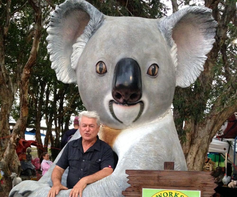 The 9ft koala with creator, Natureworks founder David Joffe. Photo: Natureworks, supplied