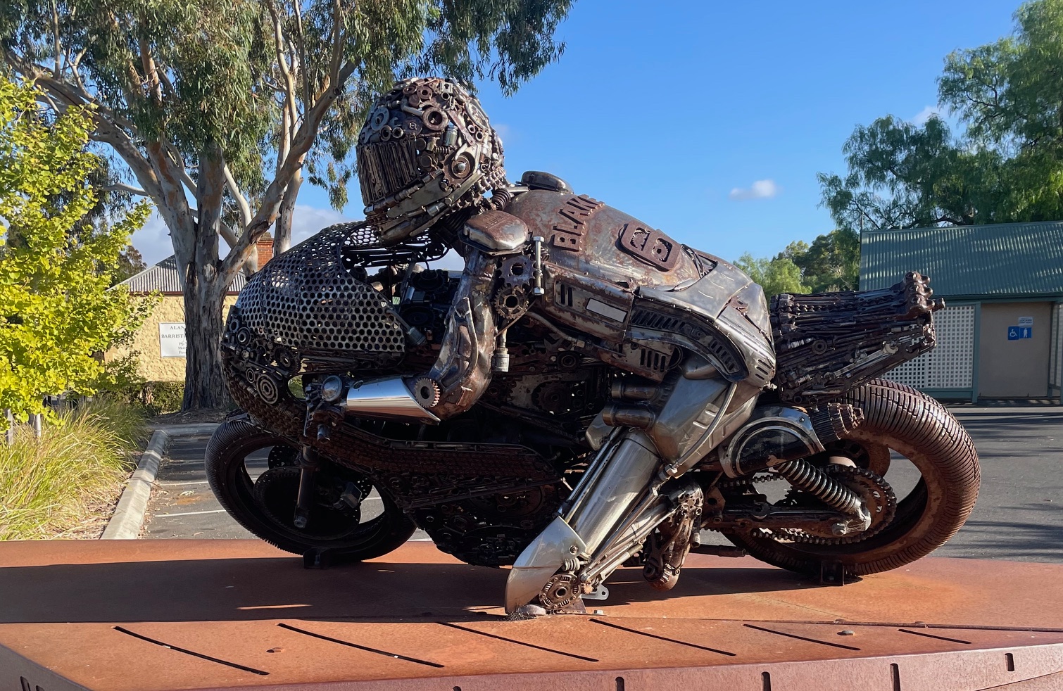 Locals and visitors can also pay tribute year-round, with a sculpture of Blake standing on the corner of Grey and High streets in Strathalbyn. The striking artwork, created by Goolwa artist James Stewart, is made from welded mechanical parts and serves as a lasting reminder of the town’s most famous rider.
